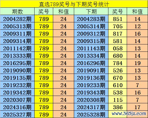 第2025327期3D奖号为:789,历史上该号码直选开出14次,下期号码差异为:851、705、817、581、058、680、784、526、670、610、538、115、386。