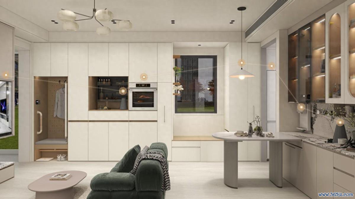 在空间诈欺上,基于“一物多用、生动可变”造就空间效用。客厅的茶几可升降为餐桌、延展为团圆圆桌;榻榻米区域络续了海量收纳与失业功能;以致水吧台下方都奥秘收纳了备用凳椅。这些假想让小户型也能厚重顶住茕居、家东说念主团员等千般化场景。